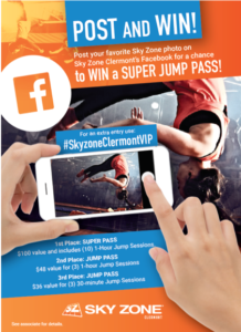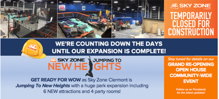 Building up to the re-grand opening, our goal was to increase guest engagement and awareness of Sky Zone using social media while developing an expansion campaign to promote the six, new attractions being added at Sky Zone Clermont. With the increased size of the facility, a strong team recruiting campaign was implemented.
